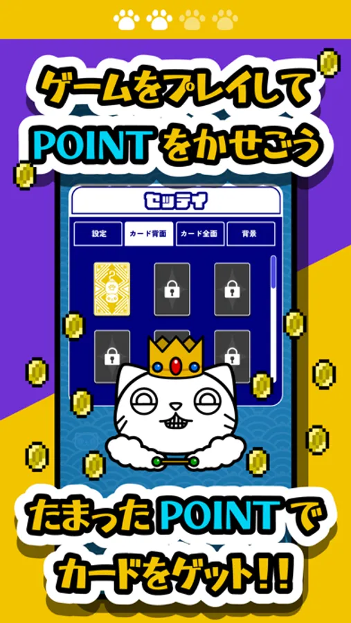 - クリアすることでポイントがたまるので、新しいねこカードを開放できます。