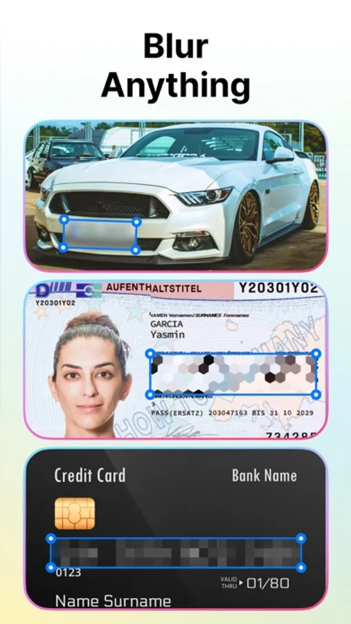 - Manual blur. This way you can censor photos, documents, hide important information, blur faces and more.