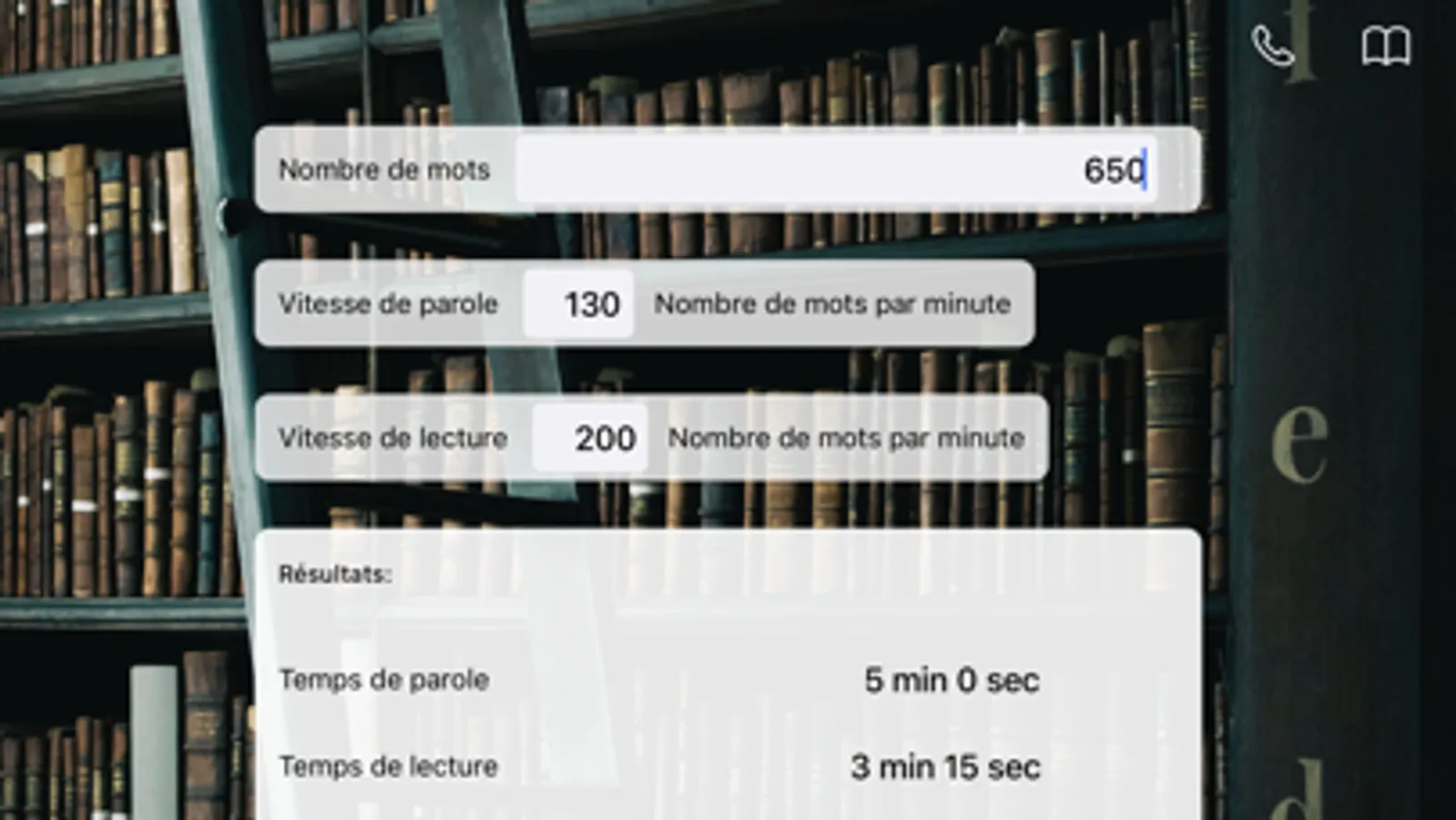Après avoir entré toutes ces valeurs, le compteur de mots par minute génère des valeurs pour le temps de parole et de lecture requis.