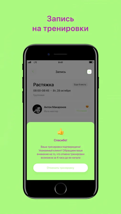 - Записаться на групповые тренировки;