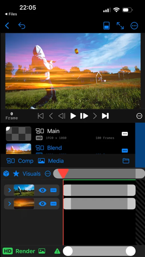 Import media (images, videos, GIFs, SVGs, image sequences and RAW footage) from Photos and Files.