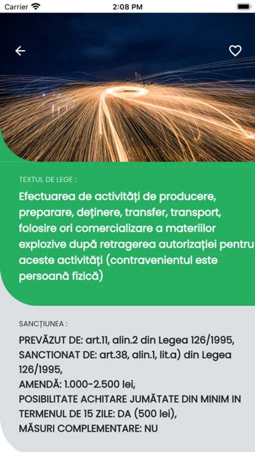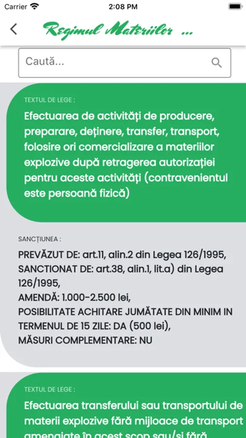 Aplicația „Amenzi Regimul Materiilor Explozive” oferă un motor de căutare rapid pentru a putea căuta: