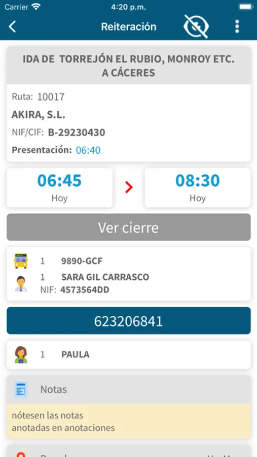Permite a los conductores realizar las siguientes acciones des de sus dispositivos móviles, entre otras: