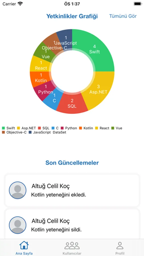 Bu bilgileri kullanarak kullanıcıların kaçının hangi yetkinlikte olduğuyla ilgili bir grafik sunar. Anasayfada yer alan Son Güncellemeler bölümü ile diğer kullanıcıların uygulama içi etkinliklerini takip etmek mümkün. Kullanıcılar çalıştıkları projeleri ekleyebilir, buradaki aktiflik oranlarını belirleyebilirler. Yeni bir proje için kaynak arayışı doğduğunda Do-veloper ile kullanıcılar arasında aradığınız düzeyde yetkinliğe sahip kişileri kolayca bulabilir, mevcut projeler arasında çalışanları filtreleyebilirsiniz.