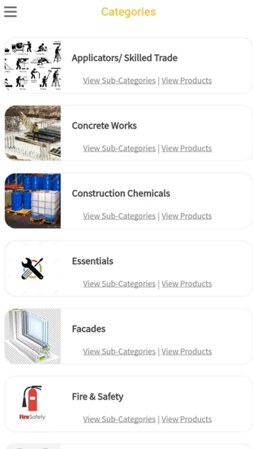 Online Platform to Buy and Sell Quality Construction Products related to Concrete Works, Interior Finishes, Construction Chemicals, Facades, Electro-Mechanical (MEP), Air conditioning (HVAC), Fireproof Solutions, Safety Gears, Construction Tools & Equipment.