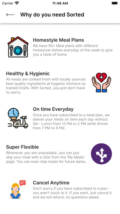 How does Sorted make your life easy? Our plans allow you to stop wasting time and stress out in ordering your meal everyday. With 3 clicks, you can order a Daily Tiffin Subscription (available in Weekly & Monthly Plans), exclude Weekends and even Pause or Cancel at any time with full refunds. And voila, there is 0 Delivery Fee on Meal Plans…yayy!!