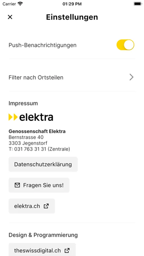 Ob geplante und ungeplante Stromunterbrüche, Themen aus der Energiewelt, Stromspar-Tipps oder Informationen zu einer möglichen Strommangellage: Wir möchten, dass Sie jederzeit gut informiert sind. Deshalb haben wir für Sie die Elektra App entwickelt. Das bietet Ihnen die Elektra App: