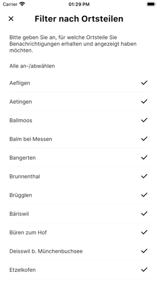 - Sie wählen die Ortsteile aus, über die Sie informiert werden wollen.