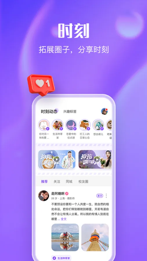 时刻动态广场,参与趣味话题讨论、记录生活。