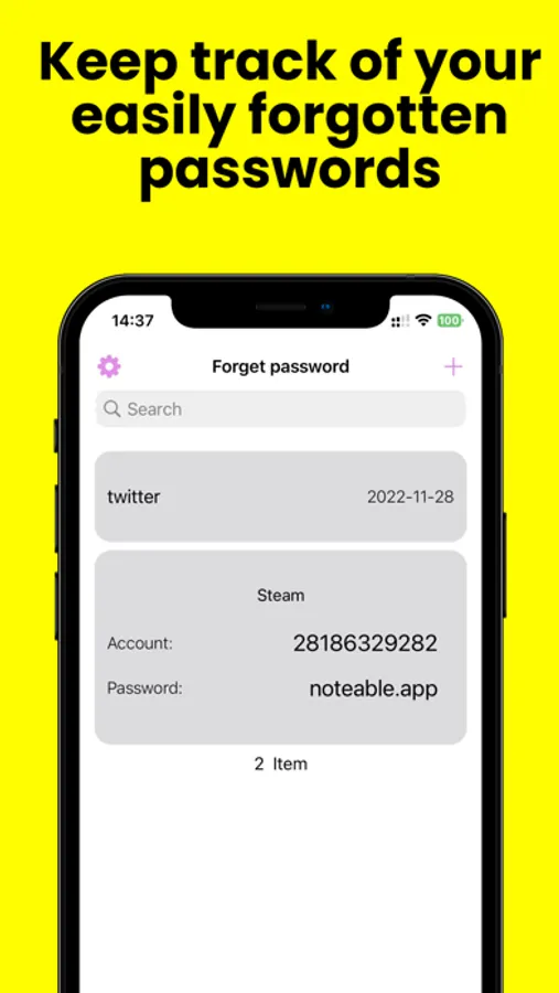 Forgot Password can help you record account numbers or passwords that are easy to forget, and will recommend more secure passwords to you.