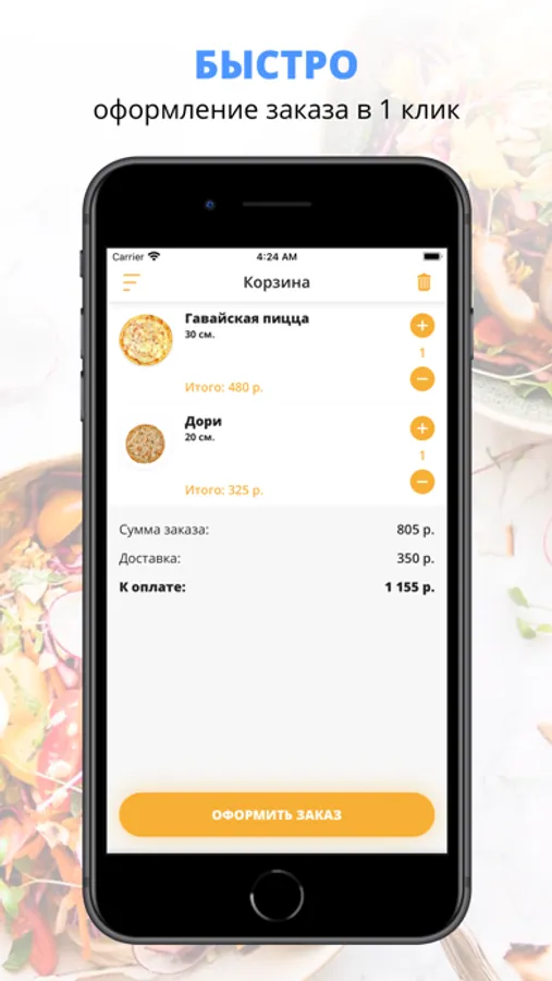 Скачивайте наше приложение, оформляйте заказ и наслаждайтесь любимой едой, где бы Вы ни были! Приятного аппетита!