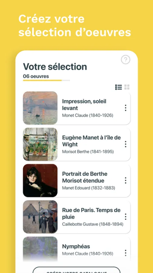 - Ajoutez à votre sélection les œuvres que vous aimez (de 8 à 44 œuvres)