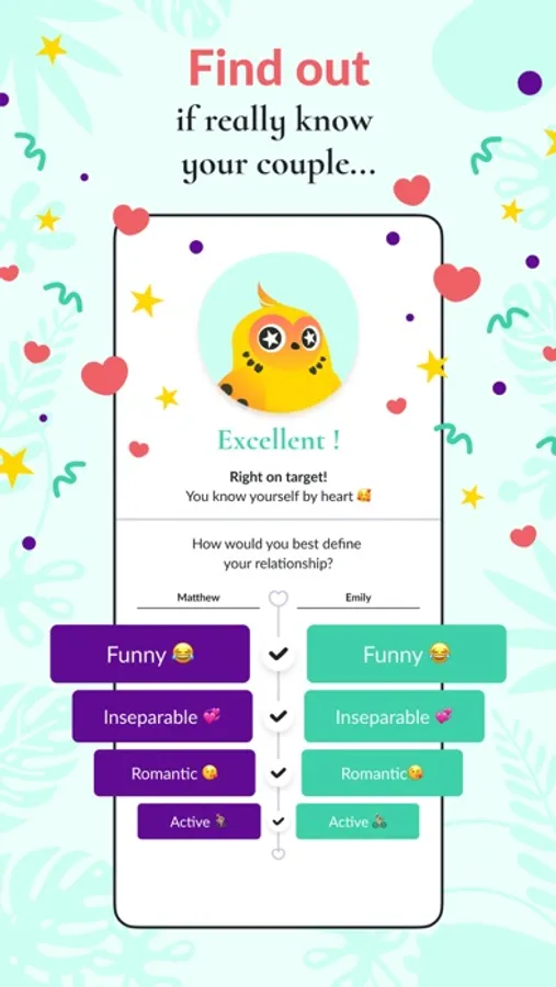LovBirdz is a quiz for couples that will test how well you know each other so you can spend an unforgettable moment together.