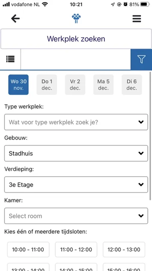 Deze app kan worden gebruikt door bezoekers en medewerkers van de Zoetermeer organisatie voor het reserveren van werkplekken.