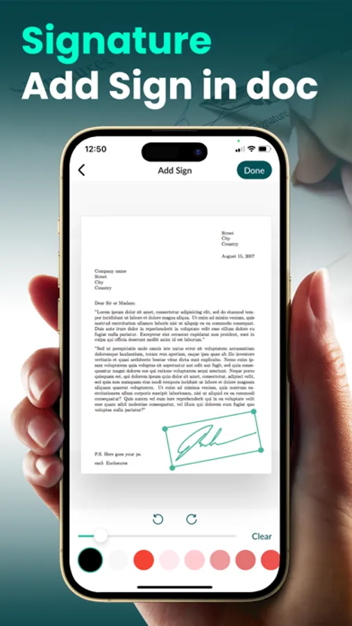 Upload and sign a doc to use the E-signature pad on your phone and sign the contract to your business party. Sign contracts and share with your third party or counter party.