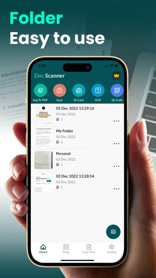 - Create classified folders to scan and save different documents in an organized manner Camera Scanner app.