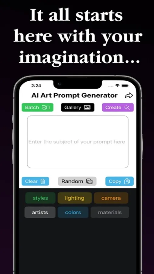Art made with Artificial Intelligence is the future but it can be tricky to figure out how to create beautiful images! We did the hard work for you and bring you an app packed with 4000+ options to truly customize the images you create! Whether you are creating images for fun, for business or just creating for the pure joy of creating art, this app is for you!!! We have tested this app over the last few weeks, it's quite amazing how it gets your creative juices flowing! All images you see were generated by using the app to come up with the right image modifiers then those prompts were plugged into Midjourney and/or Dall-E 2, even the app icon was created with AI!!! Have fun and we can't wait to see what you create! Email us at wallpaperedup@gmail.com if you want us to showcase your work! - Lead Indie Developer at Empires Mobile