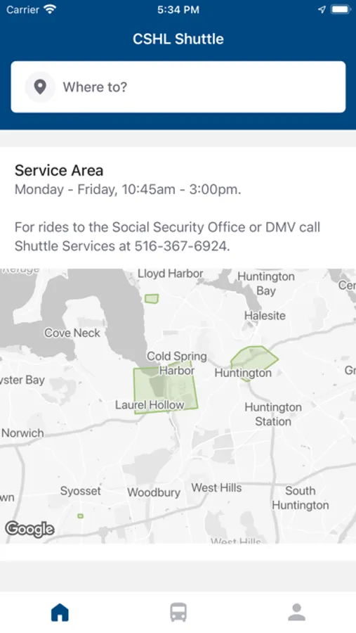 CSHL Shuttle provides access to the Cold Spring Harbor Laboratory transportation service. Download the app and request a ride today!