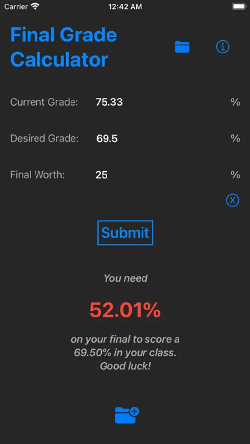 Final Grade Calculator is a tool that can help you determine what you need to score on your final exam to get your desired grade. Just plug in the grade you have, the grade you want, and how much your final is worth. You can then save this grade so you can refer back to it when studying. This way you will be able to stay on top of your studies and prioritize certain final exams.