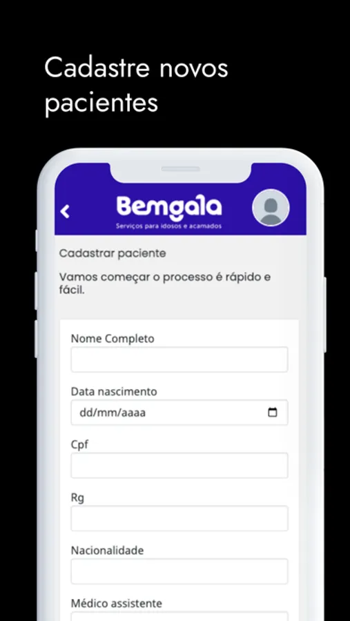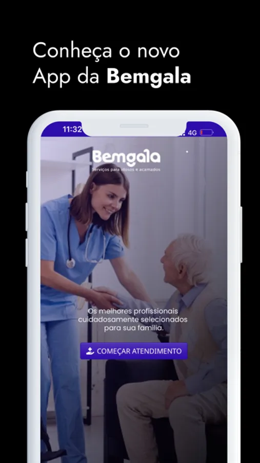 O Bemgala é um aplicativo que congrega profissionais de ponta, com experiência em atendimento a idosos e pessoas acamadas, sob a coordenação de um médico e de uma enfermeira.