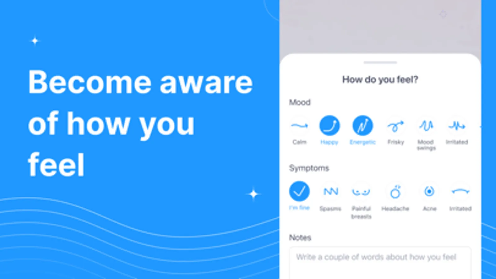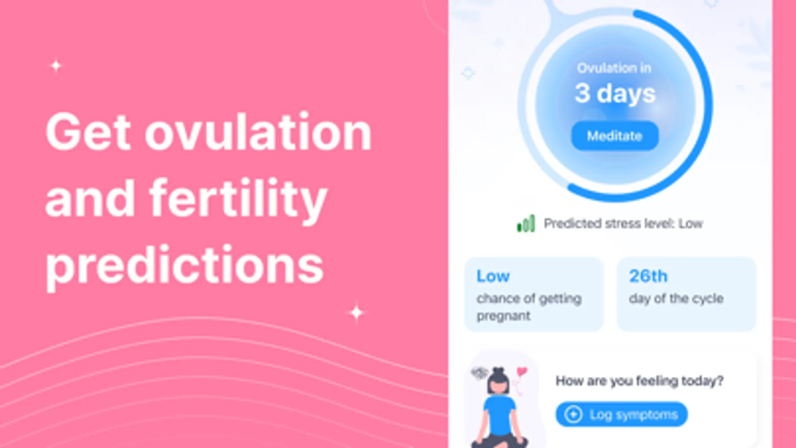 Cope with stress during periods using breathing meditations! Install the app and get rid of stress with our different breathing meditation programs. We predict your stress level using your inputs and our algorithms to create personalized meditations recommendations.