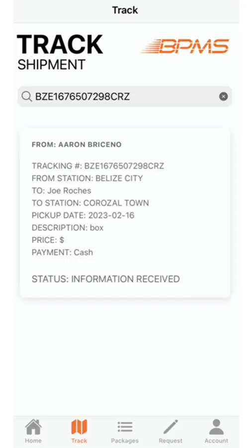 Belize Package and Mail Service "BPMS" provides shipping services all across Belize. Our mobile app was developed to enhance our customers experience, making it easier to track packages and request pickups. Our commitment is to our customers!!!