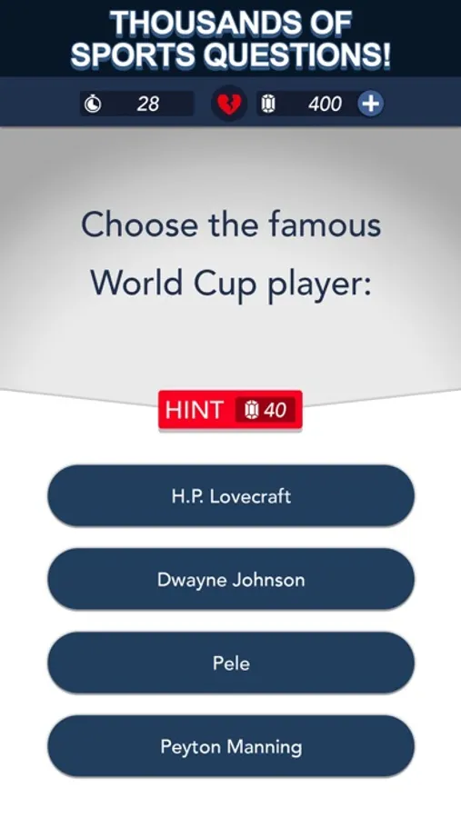 Sports Trivia Star has exciting trivia games for trivia addicts and sports fans! Sports Trivia Star starts as an easy trivia game and gets harder as you level up!