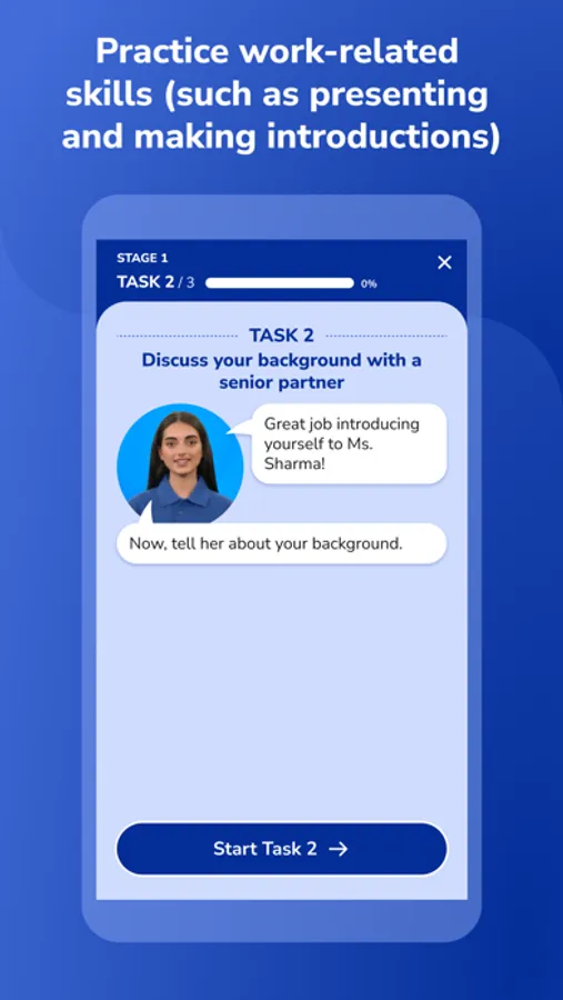 By completing the fun, short, and authentic scenarios, you will be able to improve your English workplace communication and speak more confidently and professionally; helping you achieve your goals of getting an English-speaking job and succeeding in one.