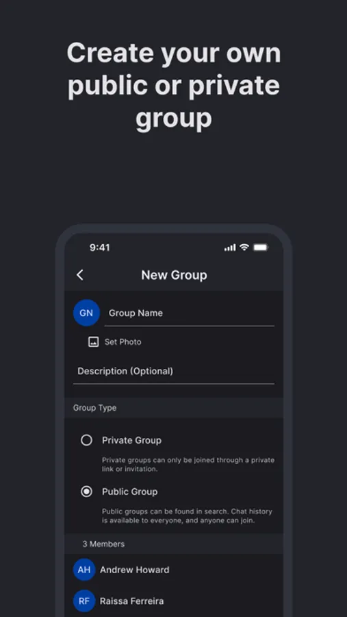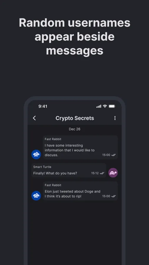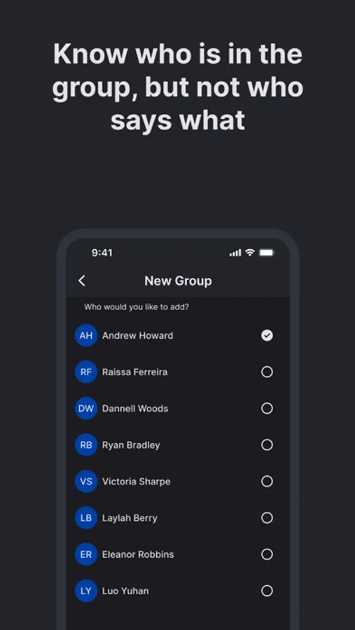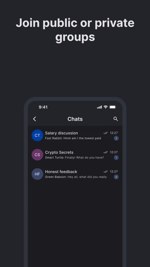 Create a private chat group with friends or colleagues. All members can see who's in the chat group, but no one knows who sent each message. This is perfect if you want to share salaries or other sensitive information with colleagues, or if you want to get honest feedback from friends.