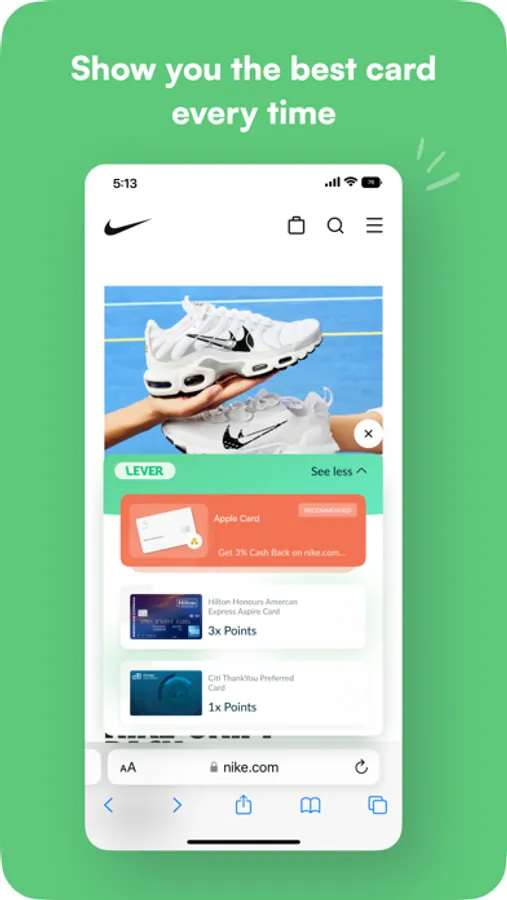 Lever makes sure you always use the best card to earn more rewards for every single purchase. With all of the credit and debit cards out there, it's hard to keep track of the rewards they each offer. Lever tells you exactly what you deserve from each of your cards at every point of sale. Get more cash back, miles, points, crypto and more with Lever! Optimize your online shopping experience and maximize your rewards. Download Lever today - it's free!