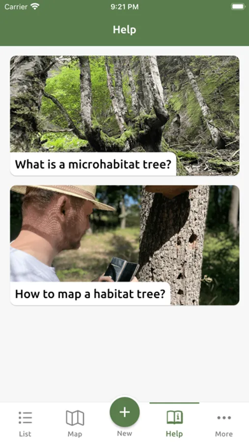 The aim of this mobile application is to create an online database of habitat trees that are important elements supporting forest biodiversity. Such elements are based on data collection carried out by qualified institutions as well as by the members of public interested in nature and its conservation; the potential to use data for scientific purposes applies in both cases. If we were able to map larger areas, point records could be used to, for example, model the occurrence of species bound to deadwood. The collected data shall contribute towards spreading the awareness regarding the importance of microhabitat trees for biodiversity protection of a great proportion of endangered species, the necessity of their protection, and required responsible behaviour in their vicinity. All this is necessary, and it is also an important prerequisite for the current presence of these valuable trees in the landscape as well as in the urban environment.