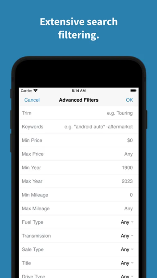 A: We're working on improving the advanced search first, to make it more intuitive. Later we'll be adding an optional login to share favorite searches and listings between app and web, and across devices, as well as the ability to manage saved searches and, eventually, saved and ignored vehicles, all from the app. After that, let us know what you'd like to see.