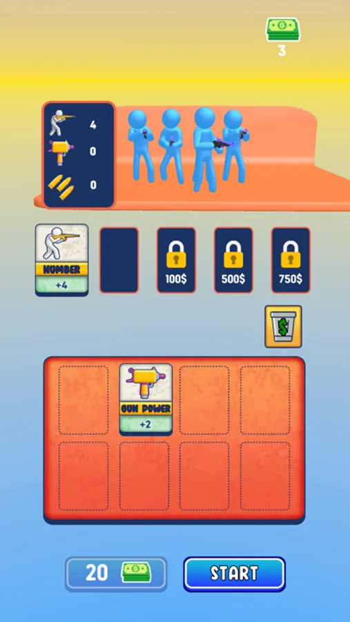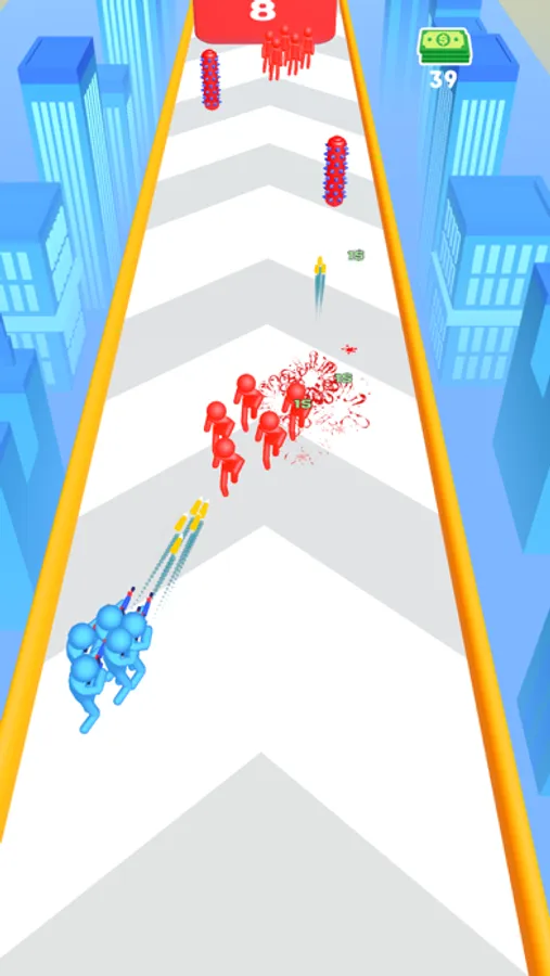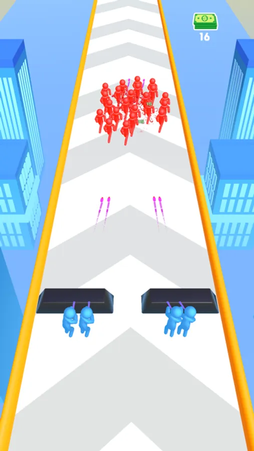 Start running by team, shoot 3D obstactles and enemies, grow your crowd and get a massive shooting power with power cards!
