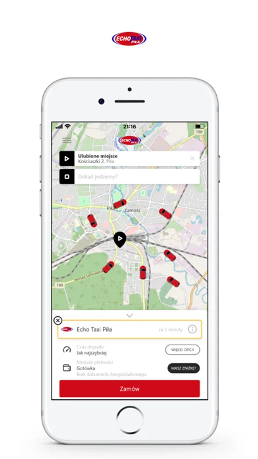 Aplikacją Echo Taxi zamówisz przewóz w mieście Piła i okolicy. Tapnij „ZAMÓW” lub wpisz adres, pod który ma podjechać taksówka w aplikacji Taxi Echo Piła a w kilka chwil będziemy na miejscu.