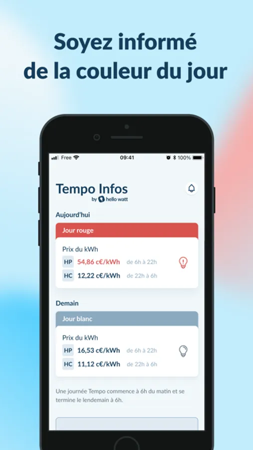 L’application Tempo Infos by Hello Watt vous indique la couleur d’aujourd’hui et de demain.
