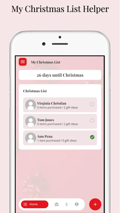 The Christmas List Help App is an easy-to-use app that lets you keep track of everyone on your list and what gifts you’ve already bought.