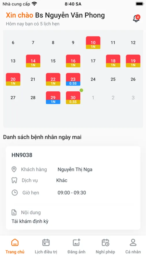 1. Kiểm tra lịch hẹn: Kiểm tra được các lịch hẹn của khách hàng