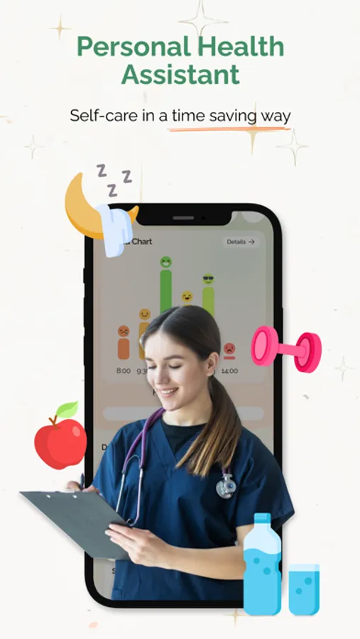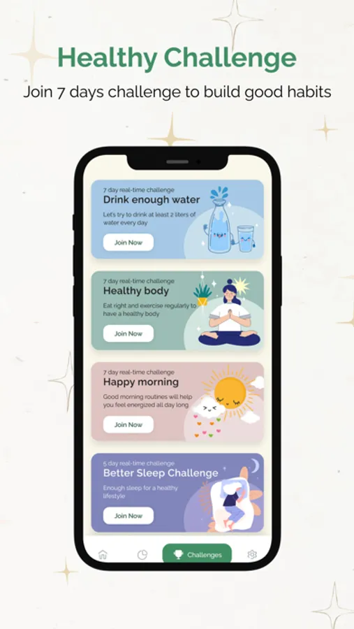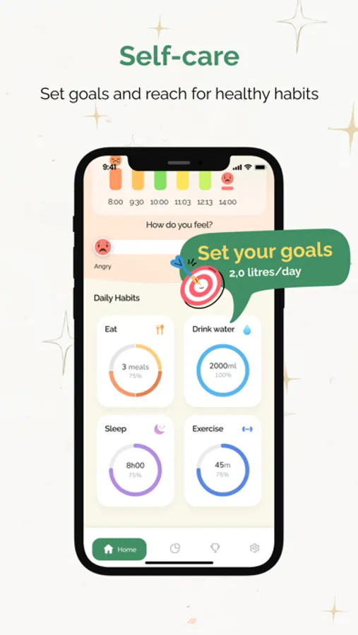 - Monitor your health through daily habits such as: Eating, Drinking, Sleeping, Exercising
