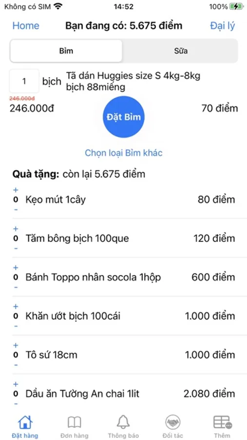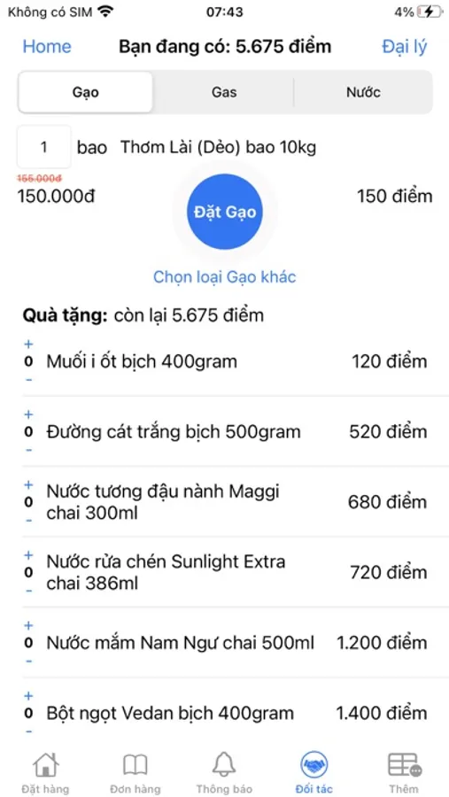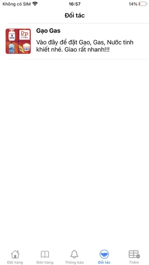 Cùng hệ sinh thái với app Gạo-Gas, chúng tôi cung cấp giải pháp đặt hàng đơn giản, nhanh và tiện dụng đến khách hàng. Đơn hàng sẽ được giao trong vòng 5 đến 15 phút, mỗi đại lý của chúng tôi chỉ phục vụ trong bán kính 2km. Các sản phẩm được bán trong ứng dụng bao gồm: Bỉm, sữa, gạo, gas và nước tinh khiết.