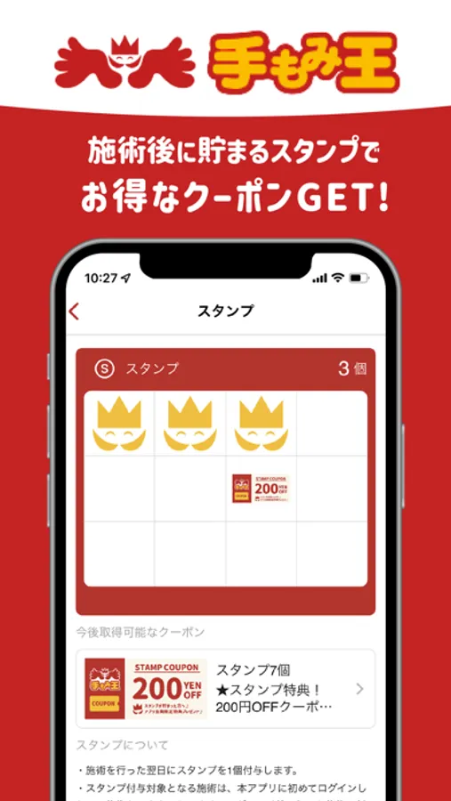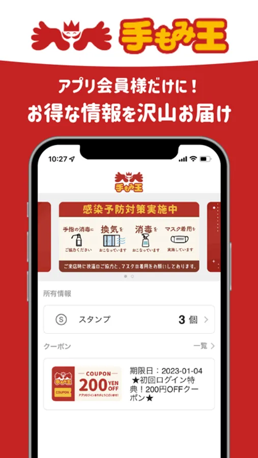 アプリを通して手もみ王の新着情報やお得な情報を受け取ることができます。