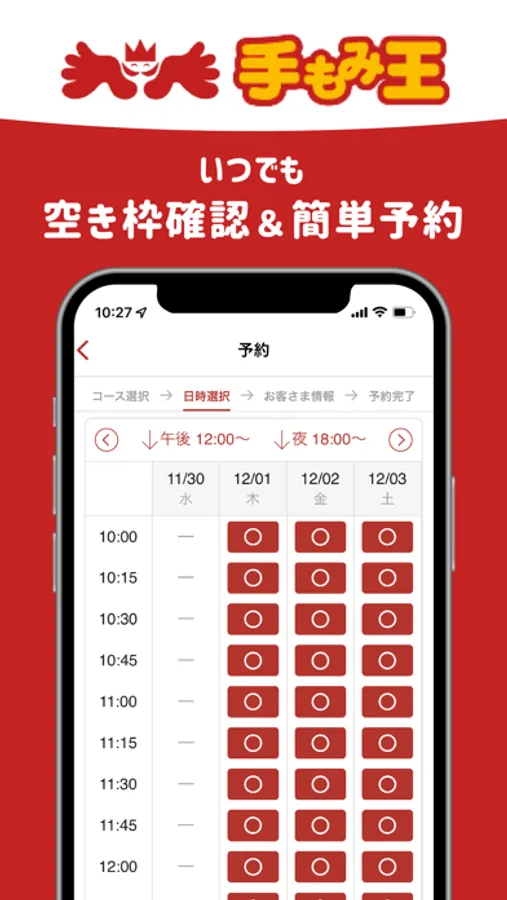 また、いつでもお手元のスマートフォンから、メニューやご希望のお時間帯のチェック・ご予約などが可能です。アプリをインストールしていただくことにより手もみ王を、より便利に身近にご利用していただけます。