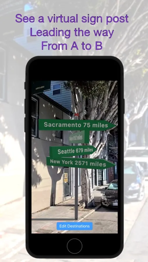 With Lead The Way, you can see a virtual sign post right in front of you that points you in the direction of your chosen location and displays the distance to your destination. Simply enter your own custom locations, and watch as the sign post appears in your real-world environment.