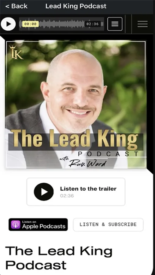 The Lead King App for iOS allows you to schedule calls with The Lead King, access your Lead King Courses, and provides you with access to The Lead King Podcast and The Lead King Website.
