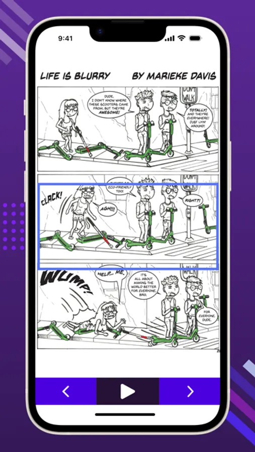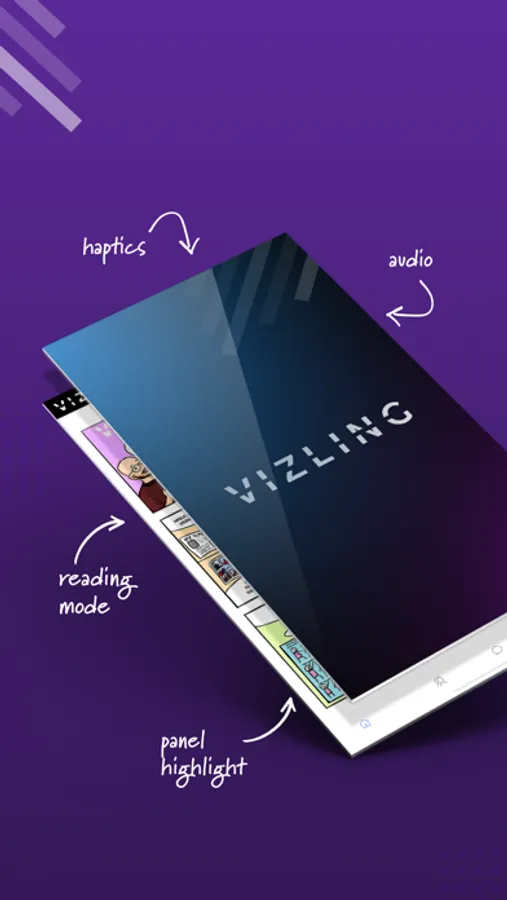 Designed to make multimodal media, like comics, maps, and art, accessible for blind and low-vision readers in an equitable way, Vizling uses an intuitive user interface which combines haptics with scaffolded exploratory reading modes. Read graphic narratives using three intuitive, touch-sensitive reading modes: