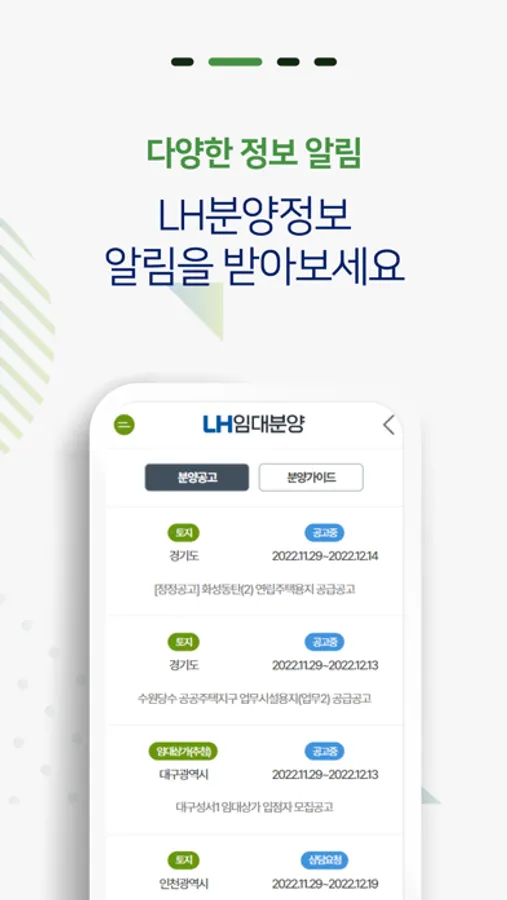 지역별, 분양유형별 공고를 통해 청약을 빠르게 준비할 수 있습니다.
