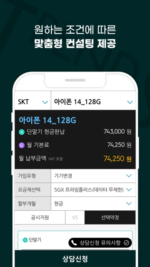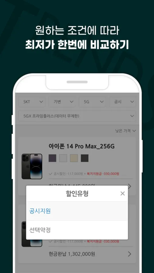 - 통신사 요금할인의 "공시지원"과 "선택약정"에 대한 정보 제공