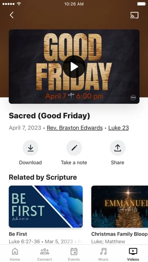 This app will help you stay connected with the day-to-day life of FBC Walterboro. With this app you can: watch or listen to sermons; stay up to date with push notifications; share your favorite messages via Facebook or email; and download messages for offline listening.