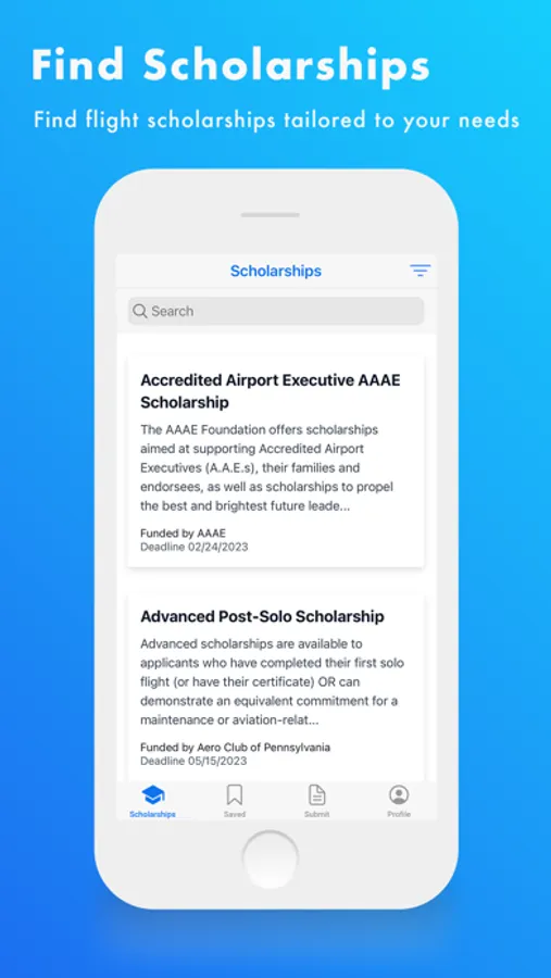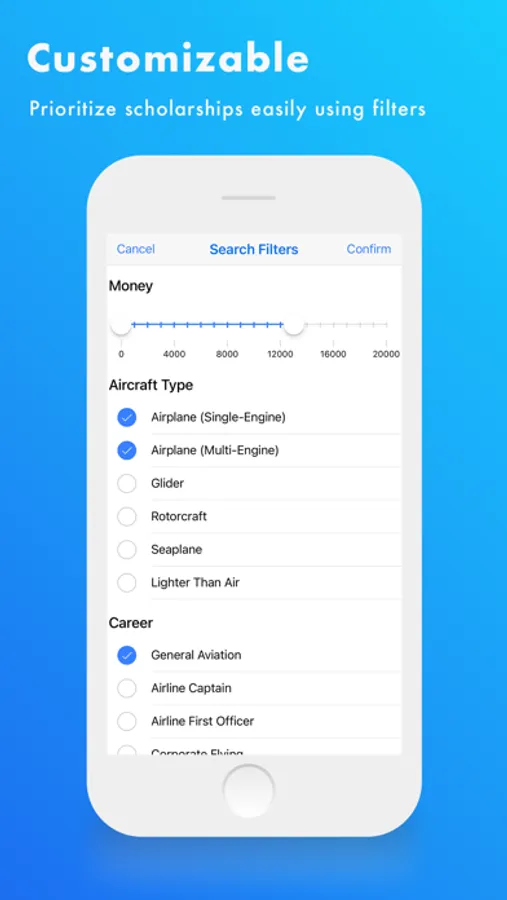 Find scholarships according to your aircraft preference, career trajectory, certifications, education level, financial needs, and more!