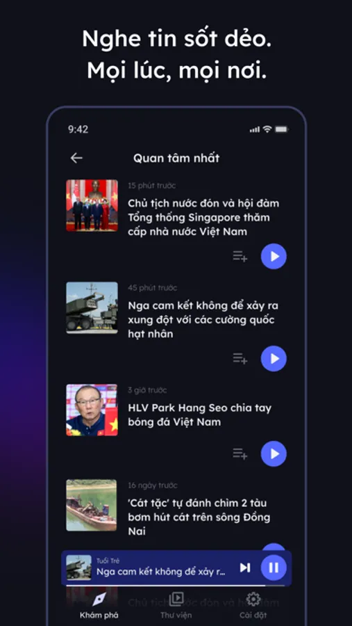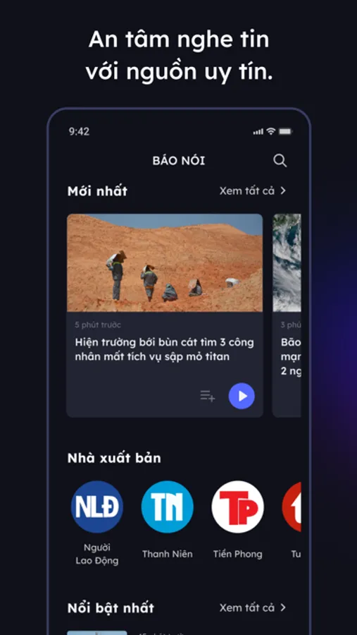 With AI-powered voice technology, Báo Nói offers a distinct news listening experience with a natural and inspiring voice.