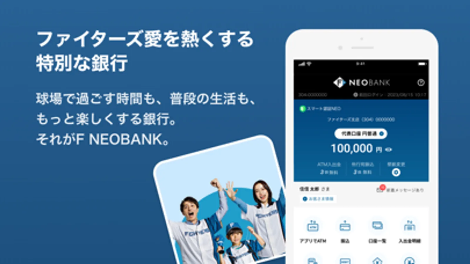 住信SBIネット銀行が、北海道日本ハムファイターズのファンに向けてお届けするF NEOBANK公式スマートフォンアプリです。